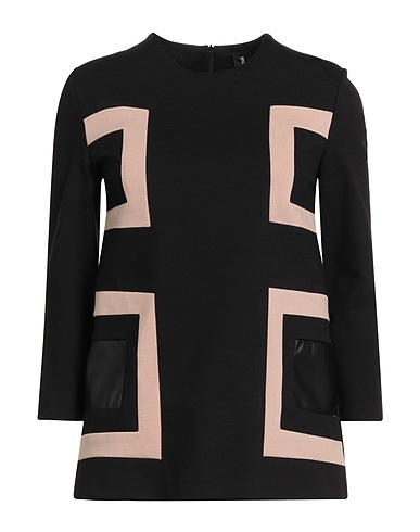 top, jersey, coated fabric, embellished, two-tone, crewneck, 3/4 length sleeves, zipper fastening, without pockets, stretch, dry clean, do not bleach, do not tumble dry