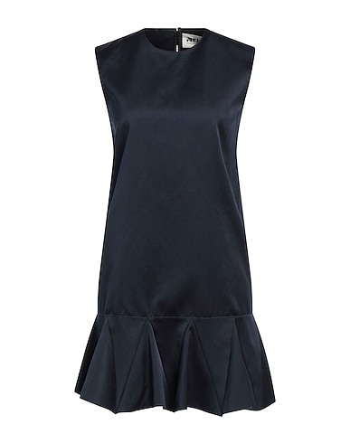 flared dress, satin, solid color, no appliqués, crewneck, sleeveless, unlined, 1 button, dry clean, do not bleach, do not tumble dry