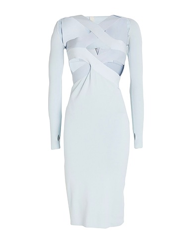 bodycon dress, knitted, lightweight knit, two-tone, no appliqués, deep neckline, long sleeves, unlined, zipper fastening, 2-piece set, machine wash or dry clean, do not bleach, do not tumble dry