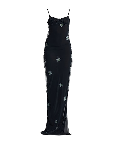 bodycon dress, tulle, stretchy fabric, floral-print, ruffles, gathered, deep neckline, sleeveless, fully lined, hook fastenings, zipper fastening, machine wash or dry clean, do not bleach, do not tumble dry, amp up the glamour with chic designer party outfits for your next event or fun night out