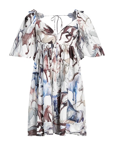 flared dress, woven, multicolor, no appliqués, v-neck, short sleeves, unlined, zipper fastening, tie fastening, without pockets, machine wash or dry clean, do not bleach, do not tumble dry