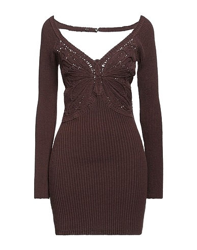 bodycon dress, knitted, lightweight knit, solid color, no appliqués, v-neck, long sleeves, unlined, button fastenings, without pockets, hand wash or dry clean, do not bleach, do not tumble dry