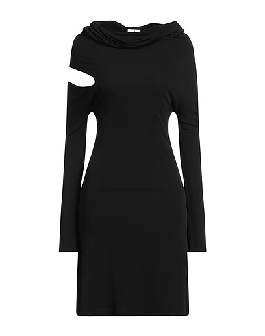 bodycon dress, jersey, solid color, no appliqués, draped neckline, long sleeves, unlined, stretch, dry clean, do not bleach, do not tumble dry