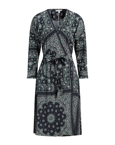 bodycon dress, woven, paisley-print, brand logo, deep neckline, long sleeves, unlined, 1 button, without pockets, machine wash, do not tumble dry