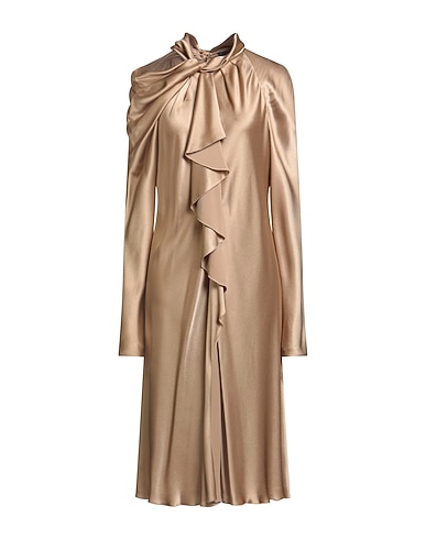 dress, satin, solid color, ruffles, crewneck, long sleeves, unlined, dry clean, do not tumble dry