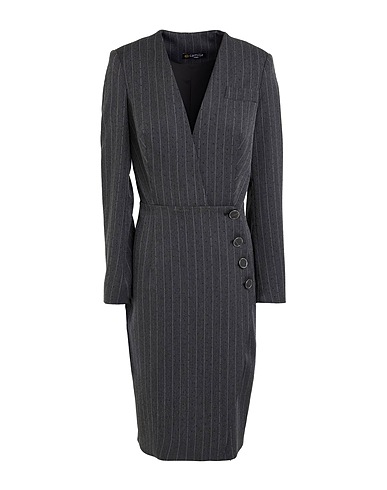 bodycon dress, twill, pinstriped, crystals, wrap-effect, deep neckline, long sleeves, shoulder pads, unlined, button fastenings, one chest pocket, stretch, machine wash or dry clean, do not bleach, do not tumble dry