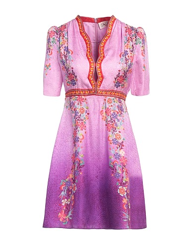 flared dress, satin, tie-dyed, floral-print, no appliqués, deep neckline, short sleeves, partially lined, zipper fastening, without pockets, dry clean, do not bleach, do not tumble dry