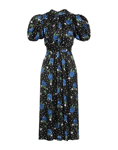 flared dress, satin, polka-dot, floral-print, brand logo, crewneck, short sleeves, puffed sleeves, unlined, tie fastening, hand wash or dry clean, do not bleach, do not tumble dry