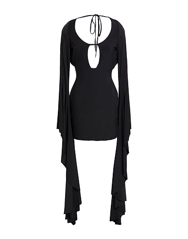 bodycon dress, synthetic jersey, solid color, open back, cutout, scoop