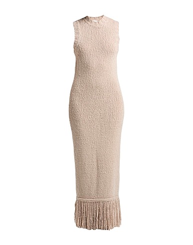 bodycon dress, knitted, medium-weight knit, solid color, fringes, crewneck, sleeveless, hand wash, do not bleach, do not tumble dry