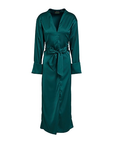 dress, satin, solid color, no appliqués, v-neck, long sleeves, unlined, stretch, machine wash, do not bleach, do not tumble dry
