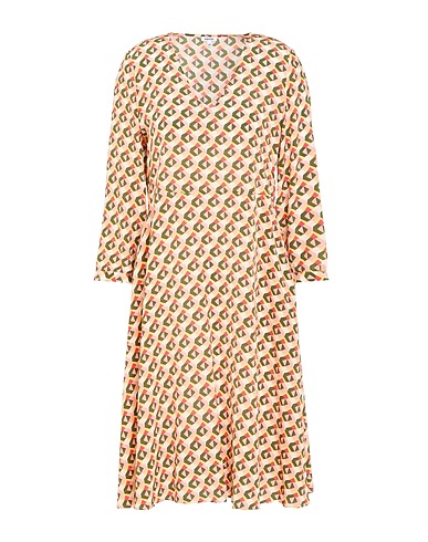 flared dress, crepe, geometric-print, no appliqués, v-neck, long sleeves, buttoned cuffs, unlined, zipper fastening, slit pockets, contains non-textile parts of animal origin, dry clean, do not bleach, do not tumble dry