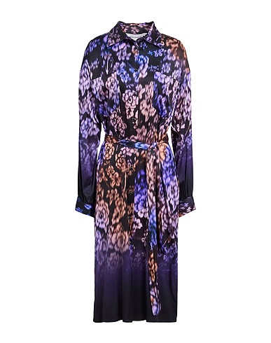 shirt dress, satin, floral-print, belt, classic collar, long sleeves, unlined, button fastenings, multipockets, stretch, dry clean, do not bleach, do not tumble dry