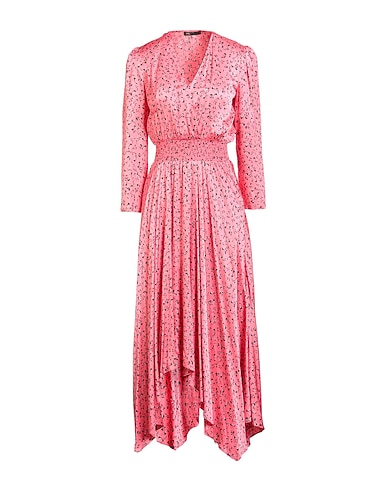asymmetric dress, satin, floral-print, shirred, deep neckline, long sleeves, unlined, without pockets, machine wash or dry clean, do not bleach, do not tumble dry