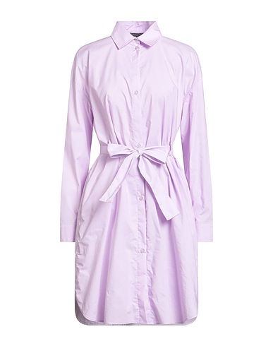 shirt dress, poplin, solid color with appliqués, embroidered logo, embellished, belt, classic collar, long sleeves, buttoned cuffs, unlined, button fastenings, multipockets, welt pocket, machine wash, do not bleach, do not tumble dry