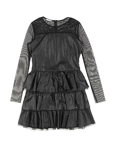 coated fabric, tulle, solid color, brand logo, tiered, crewneck, long sleeves, fully lined, zipper fastening, without pockets, hand wash, do not bleach, do not tumble dry