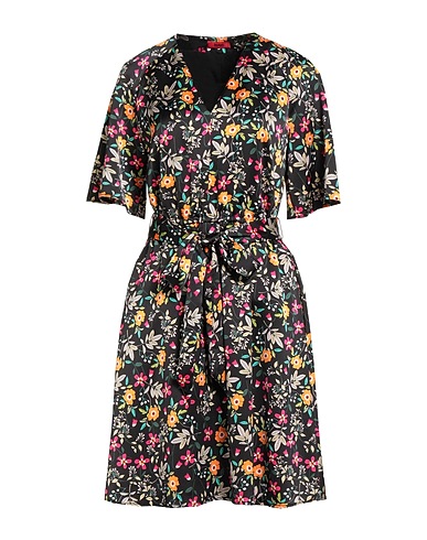flared dress, satin, floral-print, gathered, belt, v-neck, short sleeves, fully lined, machine wash or dry clean, do not bleach, tumble dry, do not iron