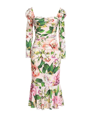 flared dress, satin, stretchy fabric, floral-print, brand logo, sweetheart neckline, long sleeves, fully lined, zipper fastening, without pockets, dry clean, do not bleach, do not tumble dry