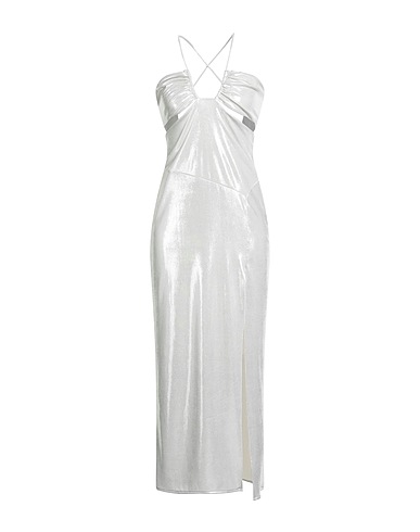 slip dress, lamé, stretchy fabric, solid color, gathered, brand logo, deep neckline, sleeveless, unlined, without pockets, side slit, hand wash, do not bleach, do not tumble dry, amp up the glamour with chic designer party outfits for your next event or fun night out