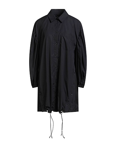 shirt dress, poplin, solid color, no appliqués, classic collar, long sleeves, buttoned cuffs, button fastenings, one chest pocket, drawstring hem, machine wash or dry clean, do not bleach, do not tumble dry