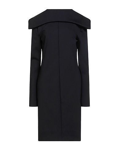 bodycon dress, crepe, stretchy fabric, solid color, cape-effect, lapel collar, long sleeves, unlined, zipper fastening, hand wash or dry clean, do not bleach, do not tumble dry