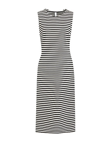 dress, jersey, stretchy fabric, striped, no appliqués, crewneck, sleeveless, unlined, hand wash or dry clean, do not bleach, do not tumble dry