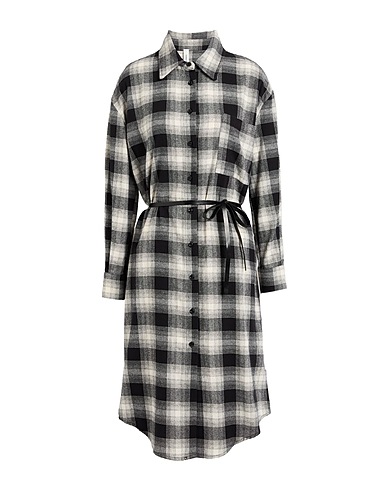 shirt dress, flannel, checked, belt, classic collar, long sleeves, button fastenings, one chest pocket, dry clean, do not bleach, do not tumble dry