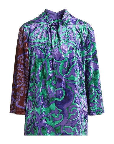 top, chenille, stretchy fabric, multicolor, gathered, crewneck, 3/4 length sleeves, partially lined, zipper fastening, dry clean, do not bleach, do not tumble dry