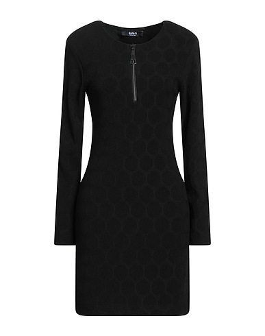 bodycon dress, knitted, lightweight knit, polka-dot, no appliqués, crewneck, long sleeves, shoulder pads, unlined, zipper fastening, hand wash or dry clean, do not bleach, do not tumble dry