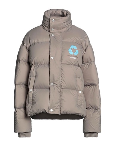 techno fabric, brand logo, solid color with print, hooded collar, single-breasted , long sleeves, duck down filling, zipper closure, snap buttons fastening, multipockets, contains non-textile parts of animal origin, single-breasted jacket