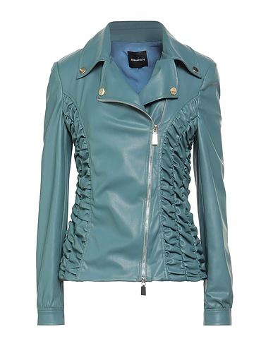 biker jacket, coated fabric, stretchy fabric, gathered, solid color, lapel collar, long sleeves, fully lined, zipper fastening, without pockets, do not wash, do not bleach, do not tumble dry, do not iron
