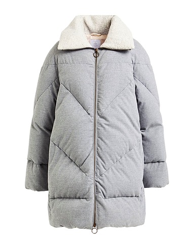 down coat, flannel, stretchy fabric, no appliqués, solid color, turtleneck, long sleeves, goose down interior, heavyweight padding, zipper fastening, multipockets, contains non-textile parts of animal origin, machine wash or dry clean, do not tumble dry