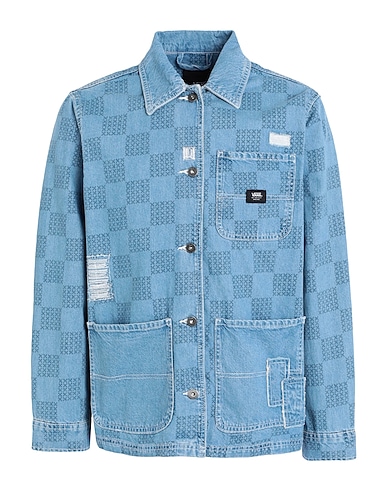 denim jacket, denim, checked, brand logo, medium wash, classic collar, single-breasted , long sleeves, buttoned cuffs, unlined, button fastenings, multipockets