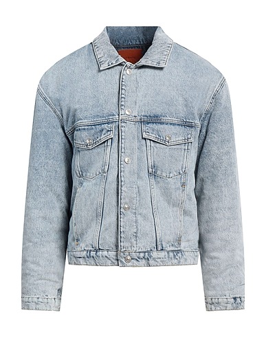 denim trucker jacket, denim, faded, solid color, no appliqués, light wash, classic collar, single-breasted , long sleeves, synthetic filling, snap fastenings, multipockets