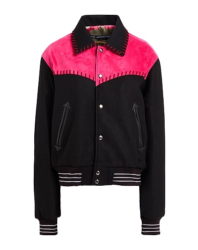 varsity jacket, felt, side seam stripes, multicolor, classic collar, long sleeves, ribbed cuffs, fully lined, snap fastenings, multipockets, contains non-textile parts of animal origin, do not wash, do not bleach, do not tumble dry
