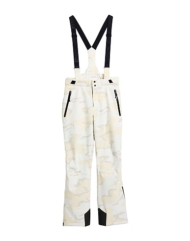 shell, brand logo, camouflage-print, snap fastenings, zipper fastening, multipockets, stretch, suspenders included, machine wash, do not bleach, tumble dry, do not iron, ski pants