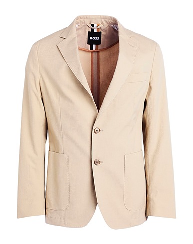 seersucker, no appliqués, solid color, lapel collar, long sleeves, buttoned cuffs, unlined, button fastenings, multipockets, dual back vents, stretch, dry clean, do not bleach, do not tumble dry, single-breasted blazer