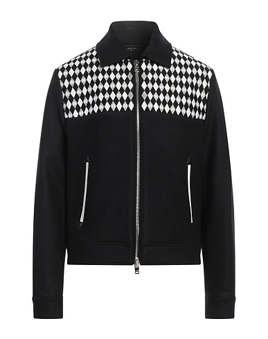 harrington jacket, felt, embroidered logo, leather trims, geometric-print, classic collar, single-breasted , long sleeves, snap-fastening cuffs, fully lined, zipper fastening, welt pockets, contains non-textile parts of animal origin, dry clean, do not bleach, do not tumble dry