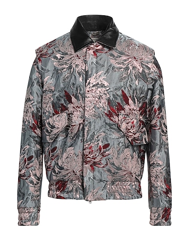 harrington jacket, leather, brocade, metallic, floral-print, no appliqués, classic collar, single-breasted , long sleeves, fully lined, zipper fastening, snap fastenings, multipockets, contains non-textile parts of animal origin, specialist clean or dry clean, do not bleach, do not tumble dry, do not iron