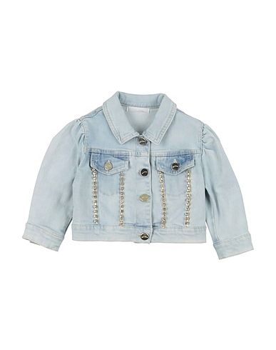 denim, faded, solid color with appliqués, crystals, light wash, classic collar, single-breasted , long sleeves, buttoned cuffs, unlined, button fastenings, two chest pockets, stretch, machine wash or dry clean, do not bleach, tumble dry