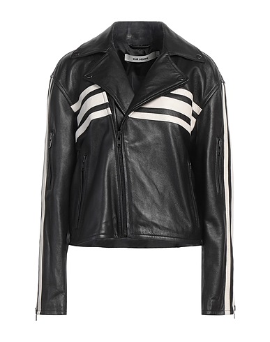 biker jacket, leather, two-tone, no appliqués, camp collar, long sleeves, fully lined, zipper fastening, multipockets, contains non-textile parts of animal origin, do not dry clean, do not bleach, do not tumble dry