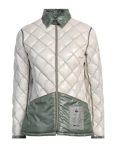 quilted jacket, shell, two-tone, brand logo, piped trims, classic collar, single-breasted , long sleeves, goose down interior, zipper fastening, zipped pockets, contains non-textile parts of animal origin, machine wash or dry clean, do not bleach, do not tumble dry, this brand runs small