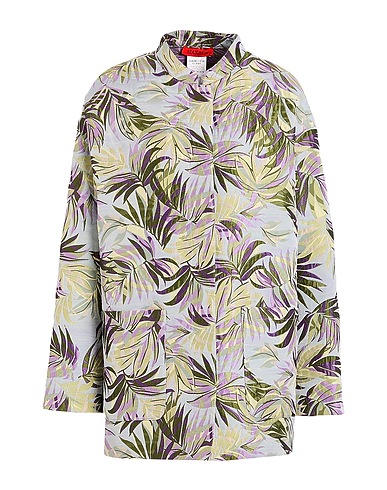 jacket, jacquard, floral-print, no appliqués, mandarin collar, long sleeves, unlined, snap fastenings, patch pockets, dry clean, do not bleach, do not tumble dry