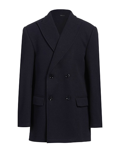pea coat, felt, solid color, no appliqués, lapel collar, double-breasted, long sleeves, partially lined, button fastenings, flap pockets, rear slit, dry clean, do not bleach, do not tumble dry