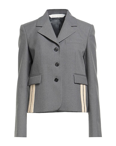 single-breasted blazer, woven, solid color with appliqués, embellished, brand logo, lapel collar, long sleeves, fully lined, button fastenings, bellows pocket, rear slit, dry clean, do not bleach, do not tumble dry