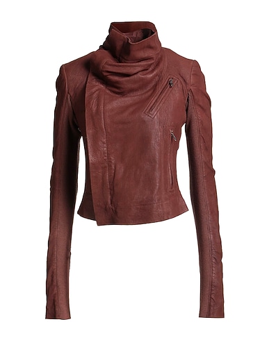 biker jacket, pebbled-leather, knitted, solid color, no appliqués, turtleneck, long sleeves, partially lined, zipper fastening, zipped pockets, contains non-textile parts of animal origin, do not wash, do not bleach, do not tumble dry, do not iron