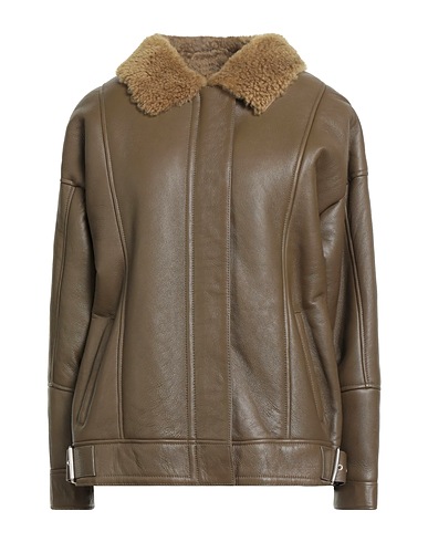 shearling jacket, leather, belt, solid color, classic collar, single-breasted , long sleeves, snap-fastening cuffs, lined in shearling, snap fastenings, zipper fastening, multipockets, contains non-textile parts of animal origin, do not wash, do not bleach, do not tumble dry