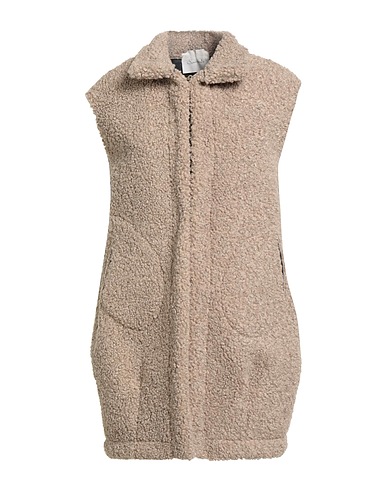 teddy jacket, bouclé, no appliqués, solid color, turtleneck, sleeveless, unlined, hook fastenings, multipockets, dry clean, do not bleach, do not tumble dry
