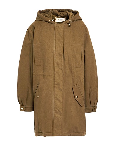 parka, gabardine, no appliqués, solid color, hooded, long sleeves, synthetic filling, lightweight padding, zipper fastening, snap fastenings, pockets, hand wash or dry clean, do not bleach, do not tumble dry
