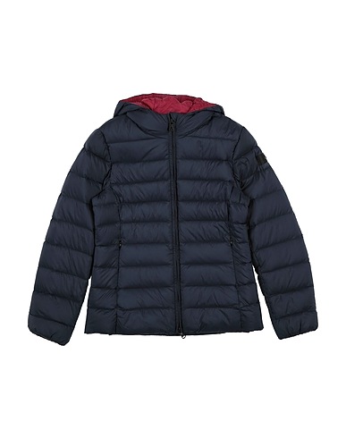 shell, brand logo, solid color, hooded, long sleeves, duck down filling, zipper fastening, zipped pockets, contains non-textile parts of animal origin, machine wash, do not bleach, tumble dry